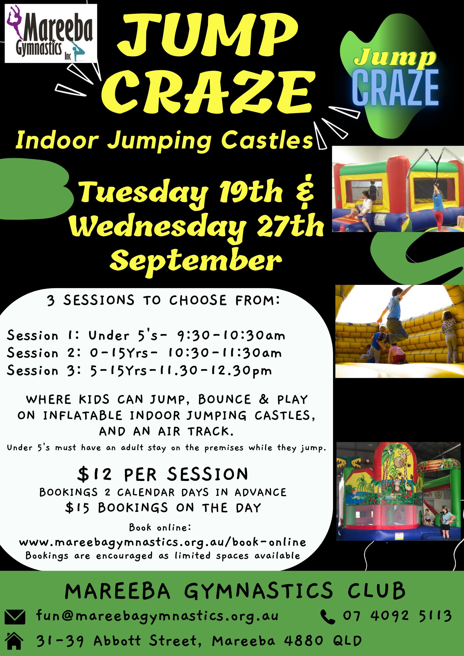 Session 3: 5-15 years 11.30-12.30pm